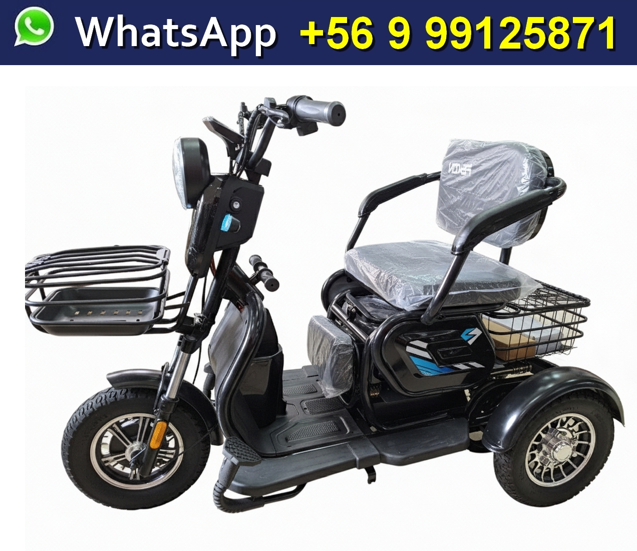 Triciclo Electrico Para Adulto Largo 2 asientos dos personas 2 pasajeros Precio en Chile $750.000 mas el precio del Flete.