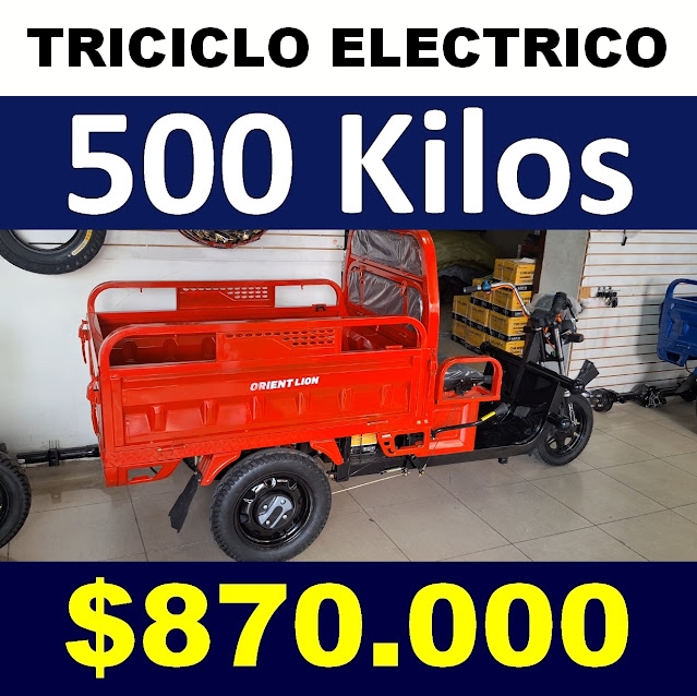 Triciclo electrico para 500 kilos Precio $870.000 mas el Costo del Flete. La pagas al Recibirla.